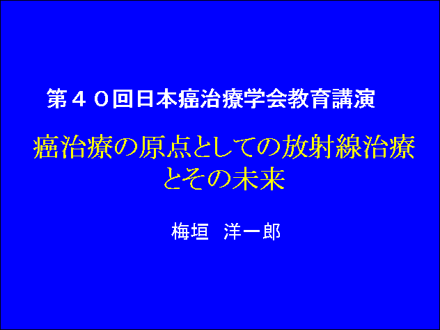 原点と未来-それは語る人によって違うでしょう。私は80歳を越える老人ですし、もう20年以上も癌の臨床から離れています。そのような人間が教育講演で原点はともかくとして、未来について皆さんにお話しするのは気がひけます。しかし敢えてお引き受けしたのは、近い将来に学会のあり方が大きく変わると思うからです。学会は今までは医師や研究者だけで運営されてきましたが、これからは社会全体特に病に悩む人々にオープンの形で運営されねばなりません。私は現在は医師というよりは、むしろ高齢者の一人として患者の側に立って癌医療を見つめています。そして放射線治療の未来に大きな期待を抱いています。