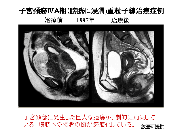 このスライドを見れば誰でも放射線治療の未来は明るいと思うでしょう。巨大な腫瘍が重粒子線治療により跡形もなく消失しています。そしてどこにも後遺症らしきものは見当たりません。私もこれを見て本当に驚き感動しました。まさにドラマチックという言葉にピッタリの症例でした。放射線治療の未来は明るいことを示しています。