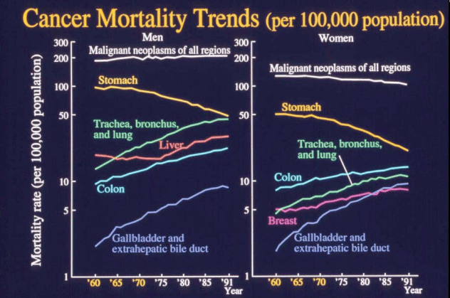 Gastric cancer was the leading cause of Japanese cancer-death in 1960fs. So national campaign emphasized the importance of the early stage detection and the treatment of gastric cancer.
