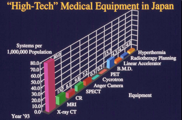 In factCJapan has the highest ratio of MRI scanners per million population in the world.