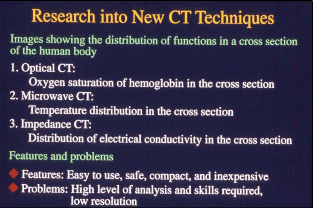 One area of great interest is the development of entirely new CT scanning techniques,including.