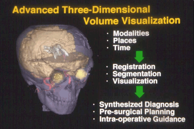 This slide shows the combination of a three|dimensional MR image and a CT image.